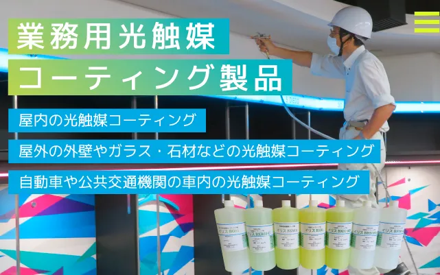 これらの製品開発とは別に、活性炭や空調機フィルターなどに酸化チタンを定着させるための研究のご依頼をいただいたりもして、光触媒コーティングを幅広く実用化してきました。
