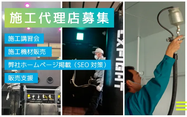 弊社では、効果の高い光触媒コーティング製品の開発はもちろんのこと、施工技術者の養成や施工機材の販売も行い、施工代理店の各種サポートも行っています。弊社の光触媒コーティング製品を使った新規事業を始めたい方は、施工代理店募集のご案内をご覧ください。
